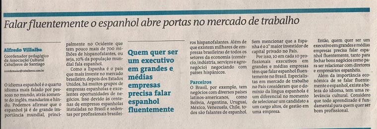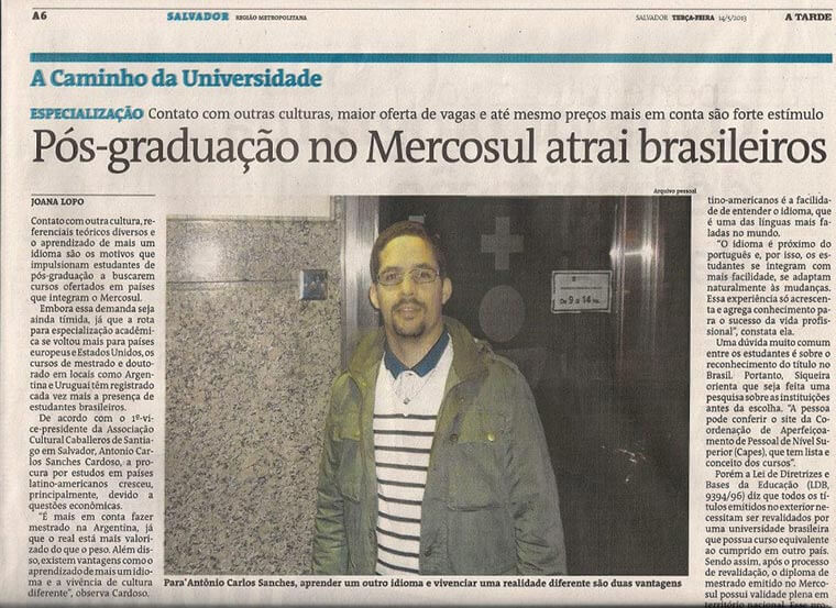O curso de Administração do Instituto Baiano de Ensino Superior estimula as atividades de gestão, pesquisa e extensão de todos os seus professores. Assim, ficamos satisfeitos de transmitir a toda comunidade Centro Universitário de Salvador – UNICEUSA o papel do professor Antonio Carlos Sanches na gestão e no intercâmbio da língua e cultura espanhola, expresso pela matéria publicada no Jornal A Tarde.