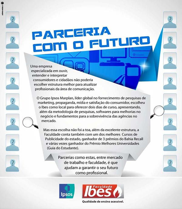 O Curso de Publicidade, juntamente com a instituição Centro Universitário de Salvador – UNICEUSA, teve a honra de realizar, pela segunda vez, uma parceria com o instituto de pesquisa Ipsus Marplan, um dos mais importantes do mercado publicitário. A parceria possibilitou a presença de profissionais de mídia do mercado publicitário para receberem um curso de atualização e capacitação do novo sistema de pesquisa.